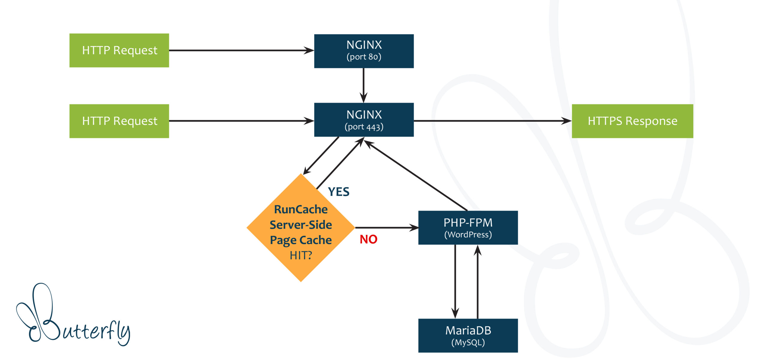 Jednom kada se na sajtu kroz WordPress i PHP generiše statički HTML/CSS on se kešira na serveru i posle isporučuje direktno sa servera, praktično skroz preskačemo PHP-FPM i WordPress zbog čega se sajt u praksi ponaša kao da je reč o statičkom a ne dinamičkom sistemu, čime smo otklonili jednu od većih mana CMS sistema kao što je WP a to je potreba da se dinamički sadržaj uvek iznova generiše kad neko poseti stranicu. Svi PHP parametri su usaglašeni tako da isporuče i više nego dovoljno resursa koje WordPress i sve prateće teme i dodaci zahtevaju.
