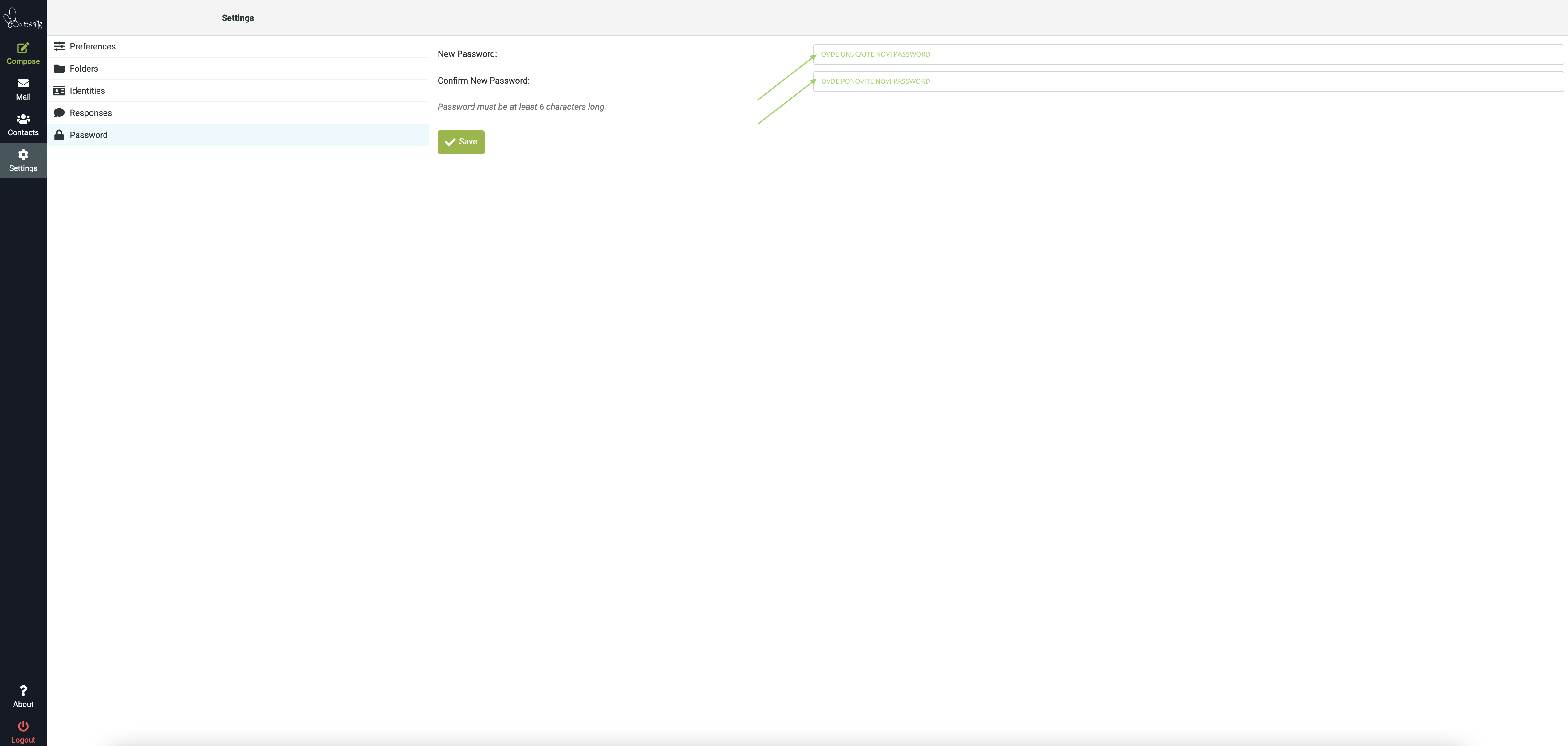 Uvek u bilo koje vreme možete preko bilo kog browser-a i putem računara i putem mobilnog uređaja ili tablema možete pristupiti emailu odlaskom adresu: https://thebutterfly.email/