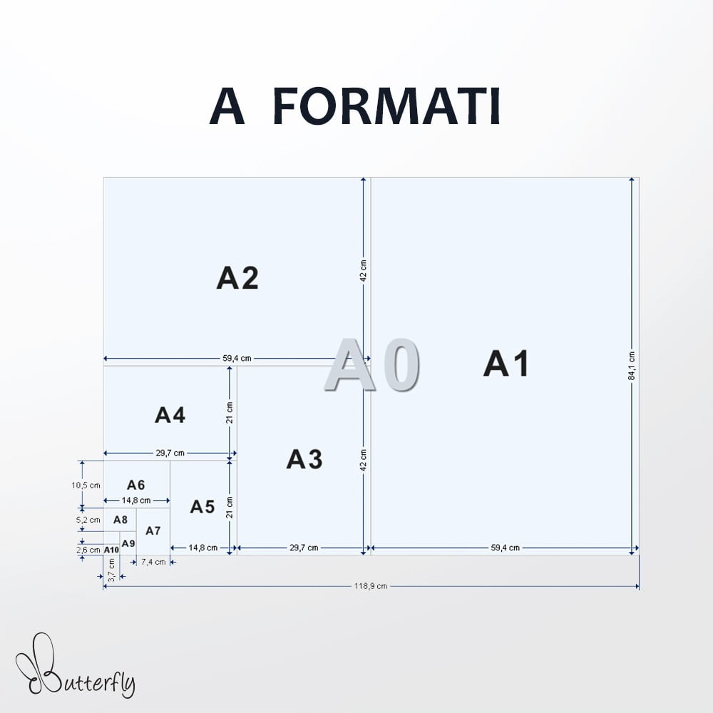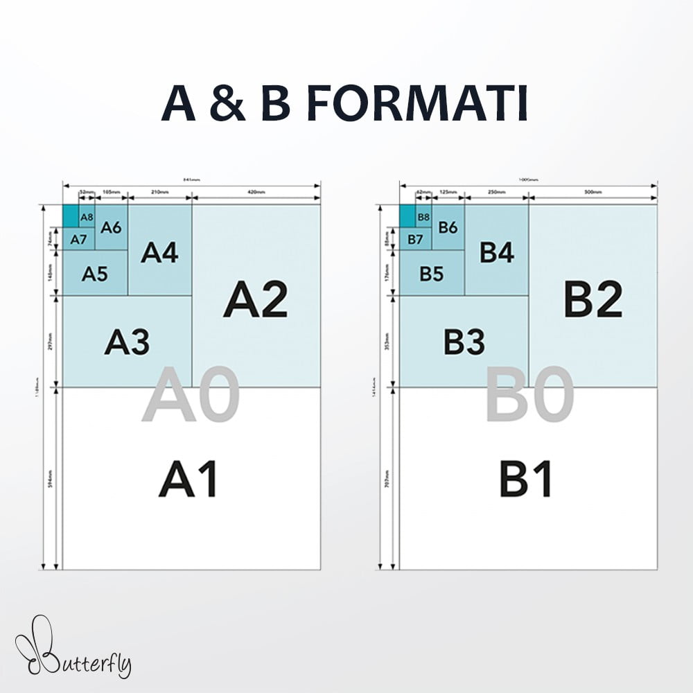 U prilogu možete videti dimenzije A formata, kao i poređenje A i B formata.